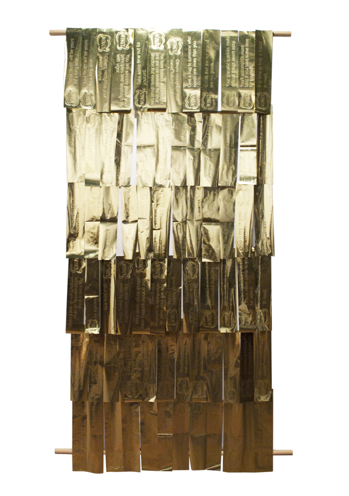 Wood, linen, and hand embossed foil wrapping paper.